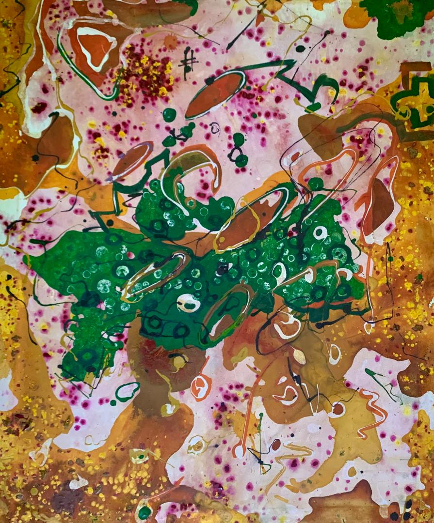 Kimberly Tatenda Gakanje works with fabric paint, spray paints and dyes to produce non-representational paintings. She experiments with colours and textures on textiles, stemming from a deep fascination with their expressive potential. Her work celebrates culture and identity while incorporating universal childhood experiences and perspectives.