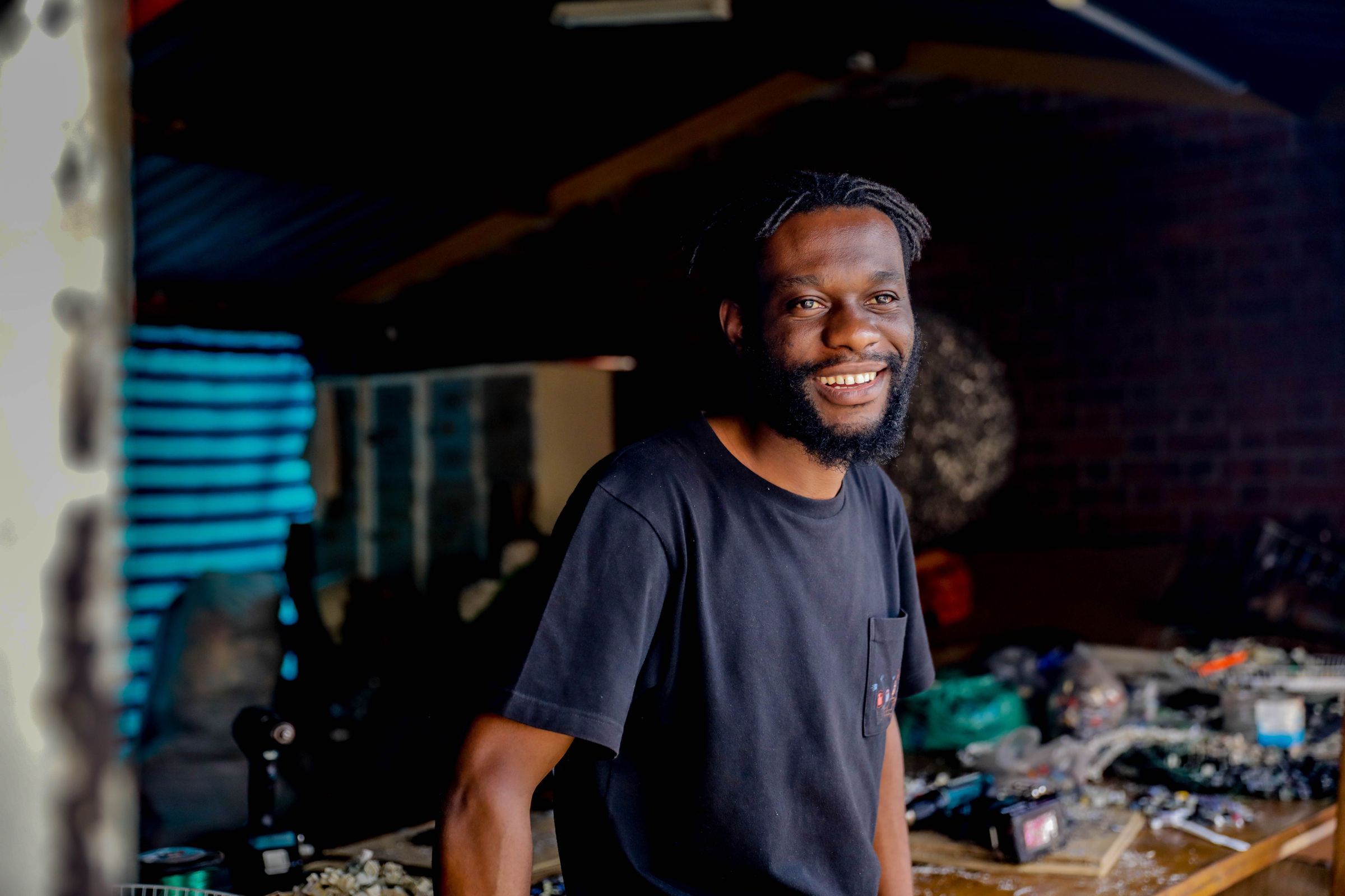 A co-founder of Mbare Art Space, Moffat Takadiwa has gained global recognition for his compelling wall sculptures crafted from found objects. Takadiwa creates large format sculptures from materials found in garbage dumps, notably computer parts, plastic bottle-caps, toothbrushes and toothpaste tubes.